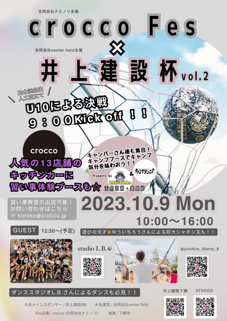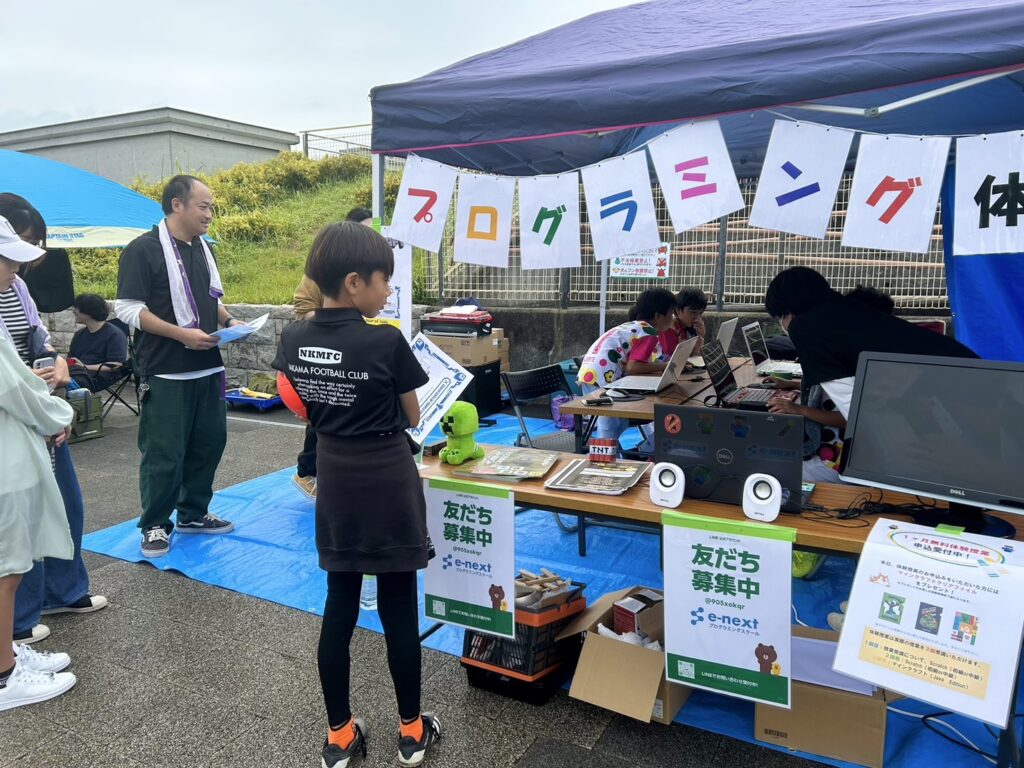 キッチンカーだけでなく、たくさんの出店者やサッカー以外の習いごと教室も初参加しました。